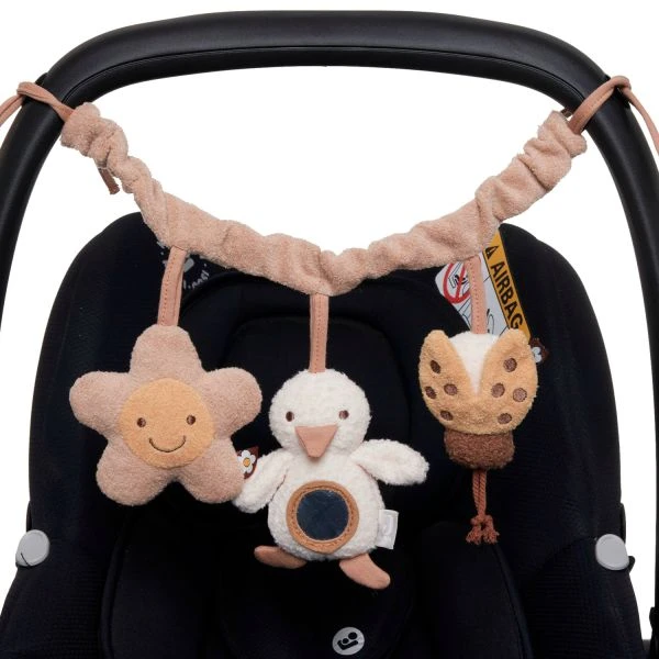 De Jollein Spring Garden Wagenspanner is een vrolijk speeltje dat je eenvoudig kunt bevestigen aan de kinderwagen of autostoel. Aan de wagenspanner hangen 3 vrolijke vriendjes die verschillende kleurtjes hebben. Dankzij de strikjes kan je de wagenspanner makkelijk vast maken. Verder is het speeltje gemaakt van hoogwaardig materiaal en ideaal voor onderweg.